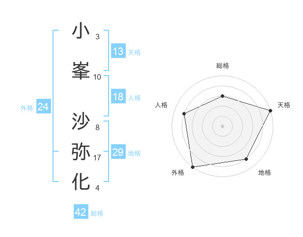 小峯 沙弥化さんを姓名の画数から五運を鑑定