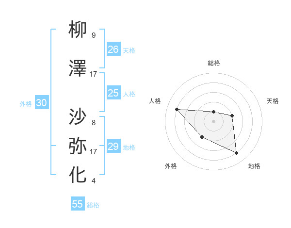 柳澤 沙弥化さんの総格は55画の1点!