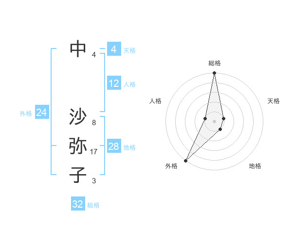 中 沙弥子さんの総格は32画の5点!
