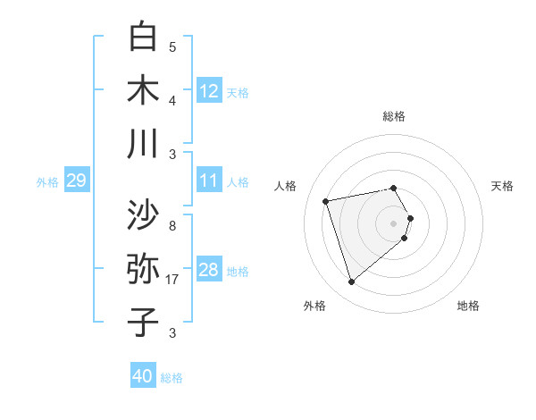 白木川 沙弥子さんの総格は40画の2点!