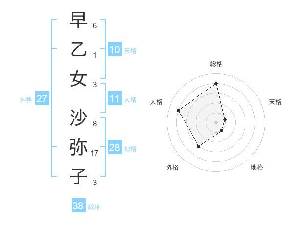 早乙女 沙弥子さんを姓名の画数から五運を鑑定