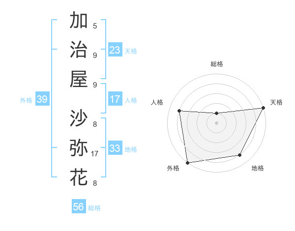 加治屋 沙弥花さんを姓名の画数から五運を鑑定