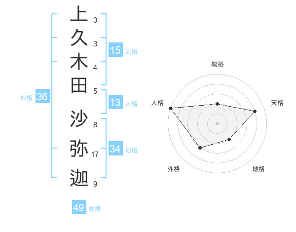 上久木田 沙弥迦さんの天格は15画の4点!