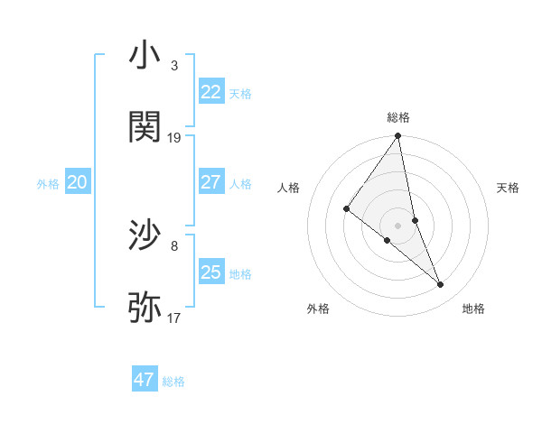 小関 沙弥さんの総格は47画の5点!