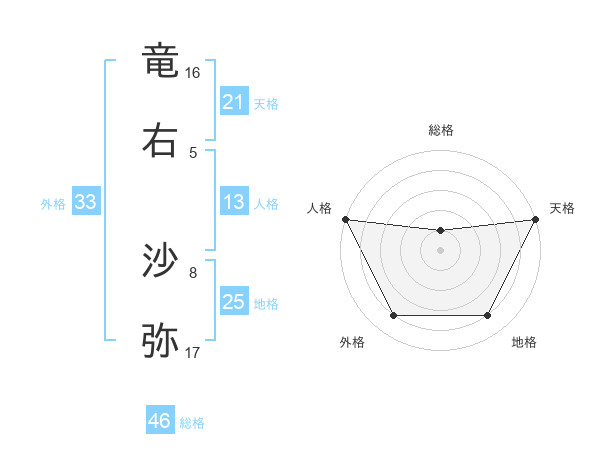 竜右 沙弥さんを姓名の画数から五運を鑑定
