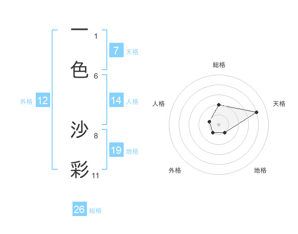 一色 沙彩さんの総格は26画の2点!