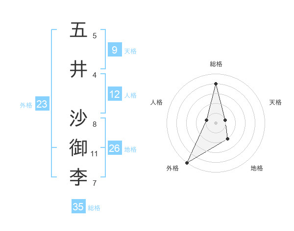 五井 沙御李さんの外格は23画の5点!