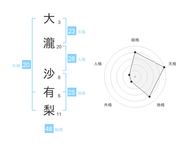 大瀧 沙有梨さんを姓名の画数から五運を鑑定