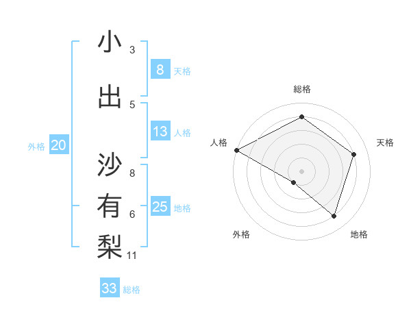 小出 沙有梨さんを姓名の画数から五運を鑑定
