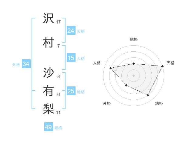 沢村 沙有梨さんを姓名の画数から五運を鑑定