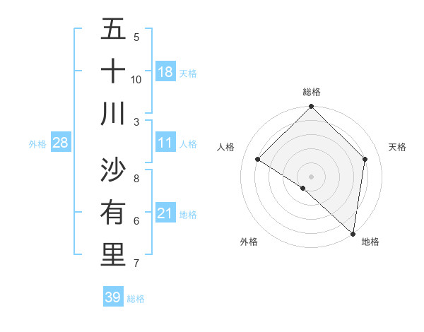五十川 沙有里さんを姓名の画数から五運を鑑定