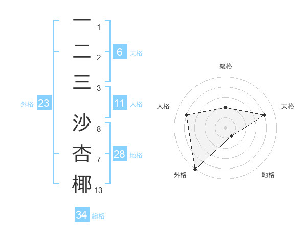 一二三 沙杏椰さんを姓名の画数から五運を鑑定