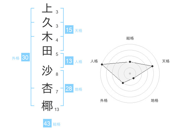 上久木田 沙杏椰さんを姓名の画数から五運を鑑定