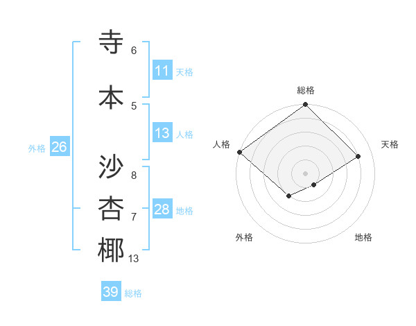 寺本 沙杏椰さんの天格は11画の4点!