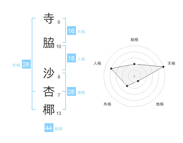 寺脇 沙杏椰さんの天格は16画の5点!