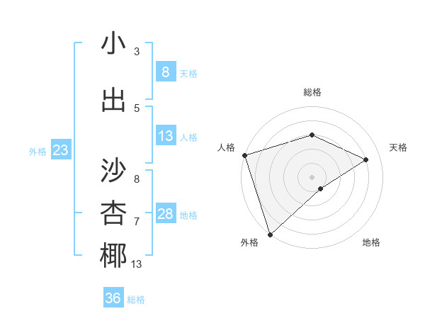 小出 沙杏椰さんの天格は8画の4点!