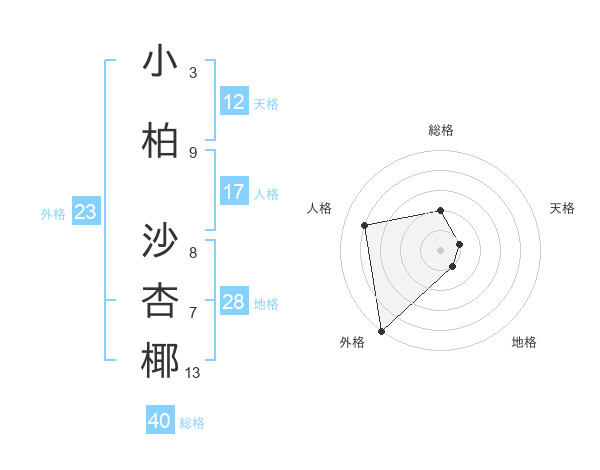 小柏 沙杏椰さんの外格は23画の5点!