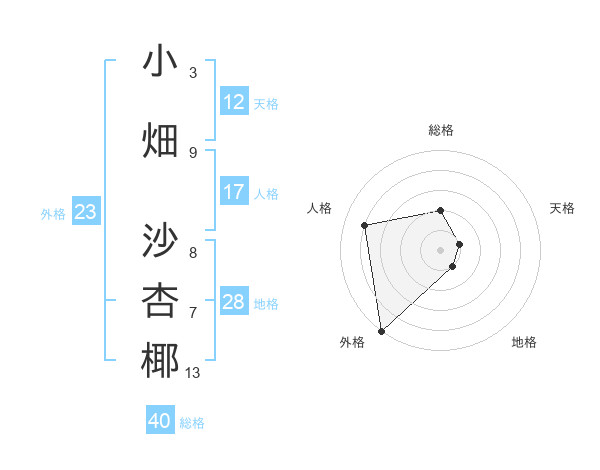 小畑 沙杏椰さんを姓名の画数から五運を鑑定