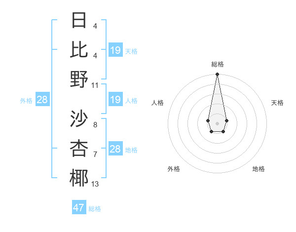 日比野 沙杏椰さんを姓名の画数から五運を鑑定
