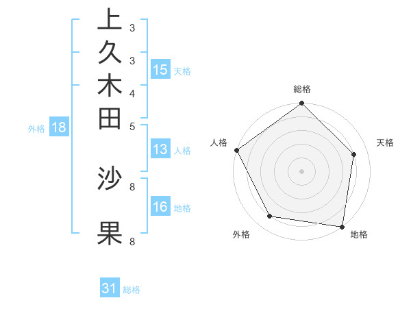 上久木田 沙果さんを姓名の画数から五運を鑑定