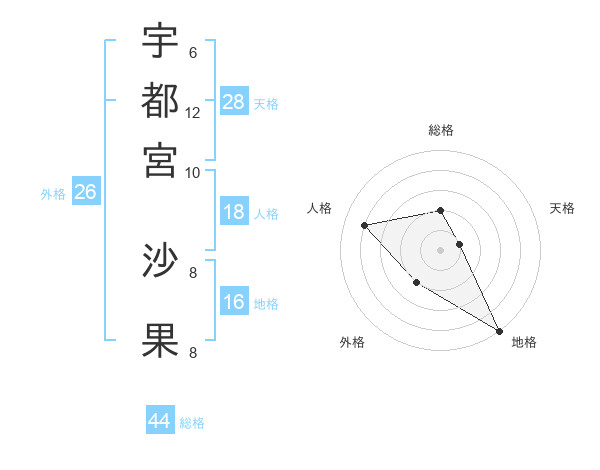 宇都宮 沙果さんを姓名の画数から五運を鑑定