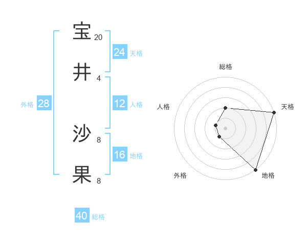 宝井 沙果さんの天格は24画の5点!