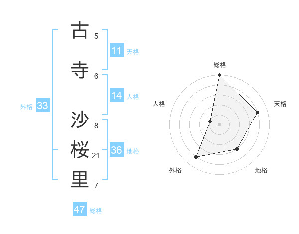 古寺 沙桜里さんを姓名の画数から五運を鑑定