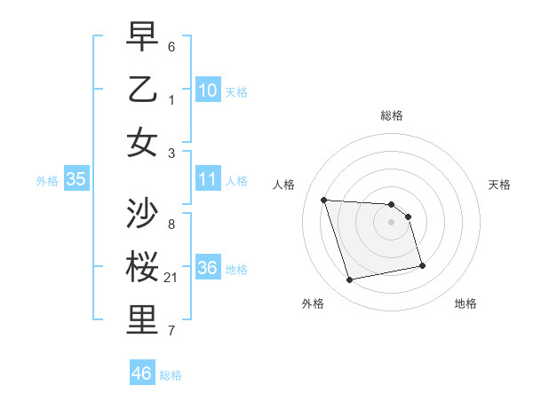 早乙女 沙桜里さんを姓名の画数から五運を鑑定