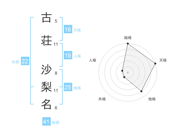古荘 沙梨名さんを姓名の画数から五運を鑑定