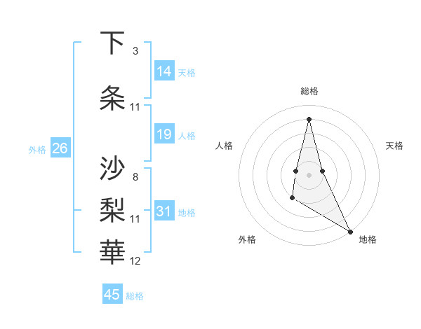 下条 沙梨華さんを姓名の画数から五運を鑑定