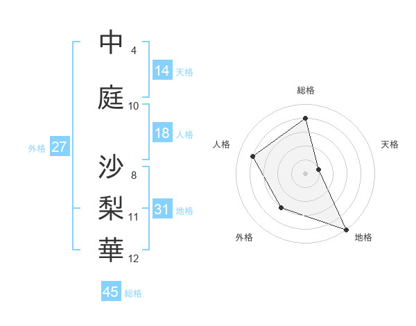 中庭 沙梨華さんを姓名の画数から五運を鑑定