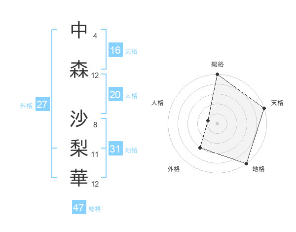 中森 沙梨華さんの総格は47画の5点!