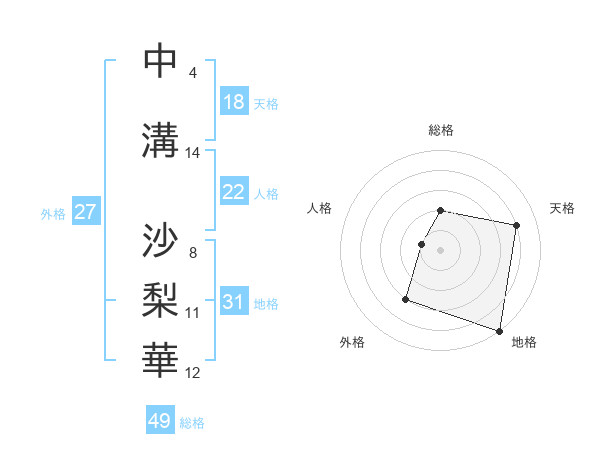 中溝 沙梨華さんの天格は18画の4点!