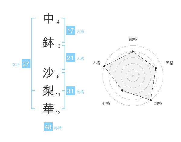 中鉢 沙梨華さんの総格は48画の4点!
