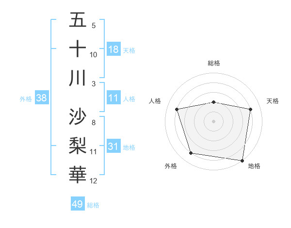 五十川 沙梨華さんを姓名の画数から五運を鑑定
