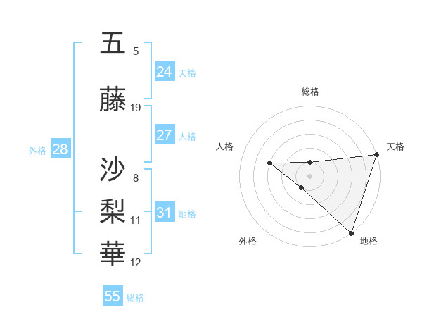 五藤 沙梨華さんの天格は24画の5点!