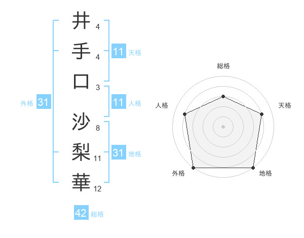井手口 沙梨華さんの地格は31画の5点!