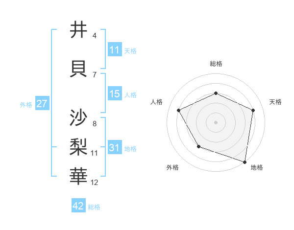 井貝 沙梨華さんの総格は42画の3点!