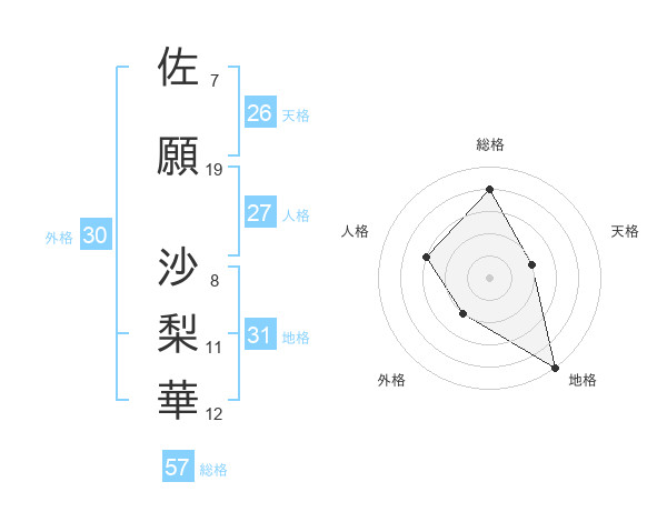 佐願 沙梨華さんを姓名の画数から五運を鑑定