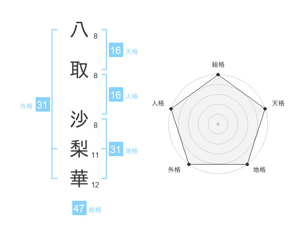 八取 沙梨華さんの外格は31画の5点!