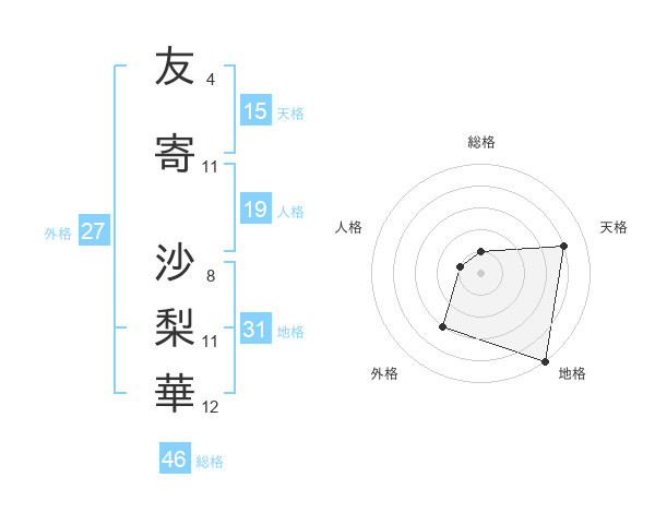 友寄 沙梨華さんを姓名の画数から五運を鑑定