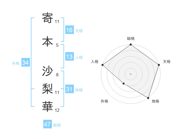 寄本 沙梨華さんを姓名の画数から五運を鑑定