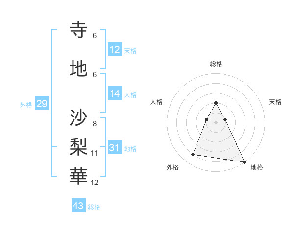 寺地 沙梨華さんを姓名の画数から五運を鑑定