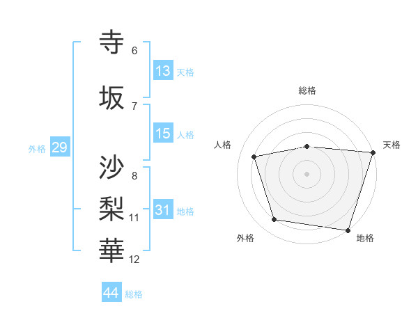 寺坂 沙梨華さんの天格は13画の5点!