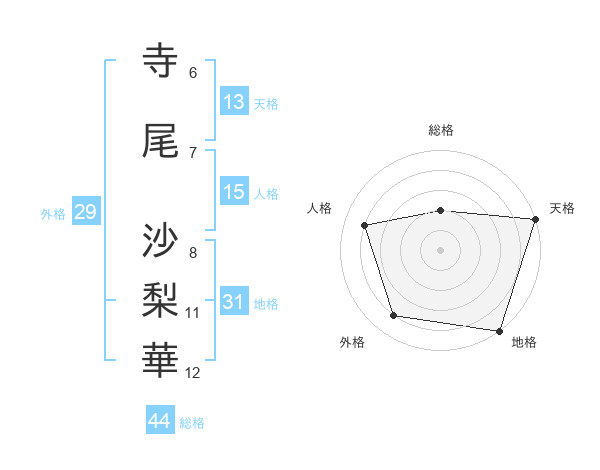 寺尾 沙梨華さんを姓名の画数から五運を鑑定