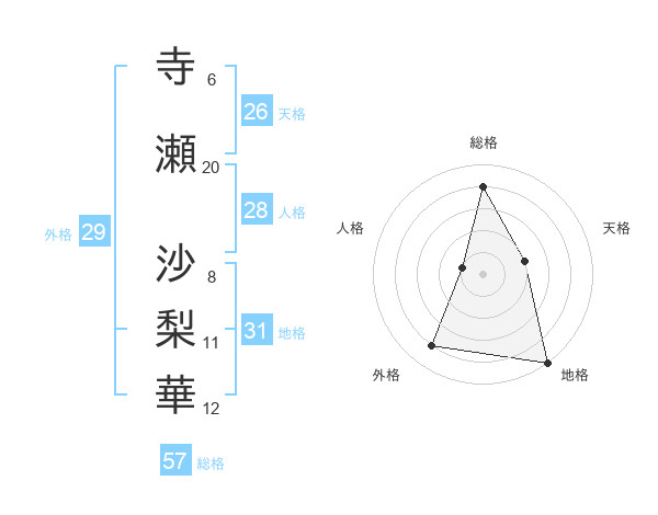 寺瀬 沙梨華さんを姓名の画数から五運を鑑定