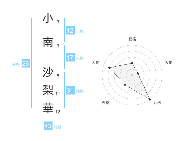 小南 沙梨華さんの総格は43画の2点!