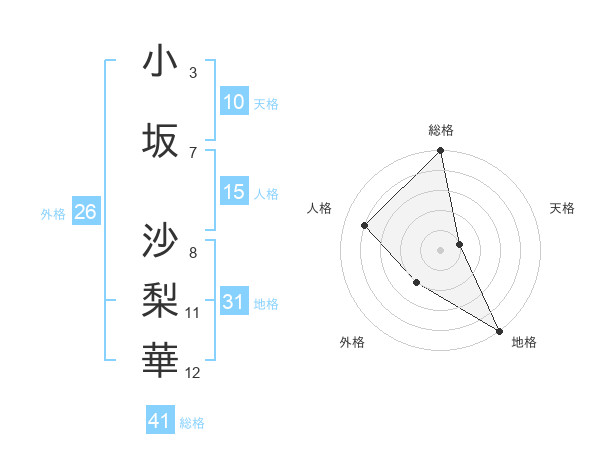 小坂 沙梨華さんの総格は41画の5点!