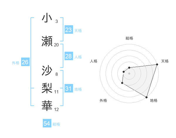 小瀬 沙梨華さんを姓名の画数から五運を鑑定
