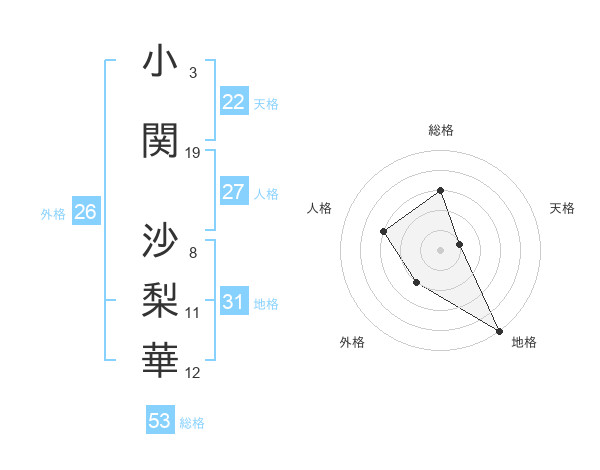 小関 沙梨華さんを姓名の画数から五運を鑑定